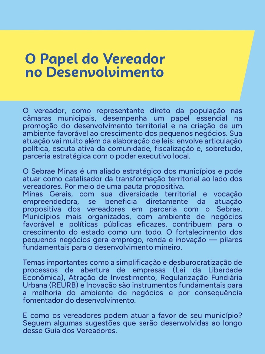 É com grande satisfação que celebramos a presença do nosso presidente da Câmara Municipal no Guia do Vereador Empreendedor, do SEBRAE MG.