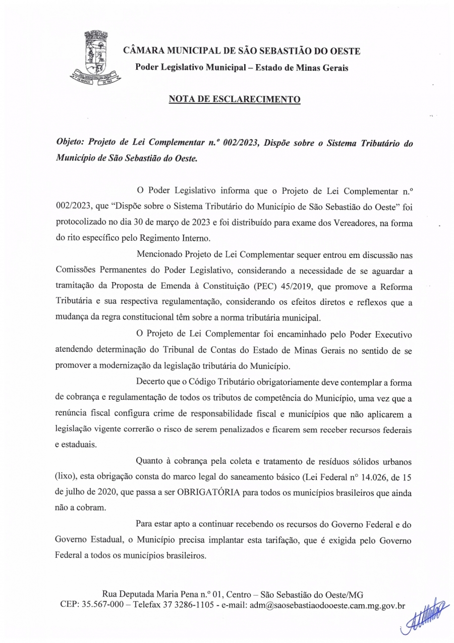 Câmara Municipal de São Sebastião do Oeste - Site Oficial - "A casa do Povo de São Sebastião do Oeste"