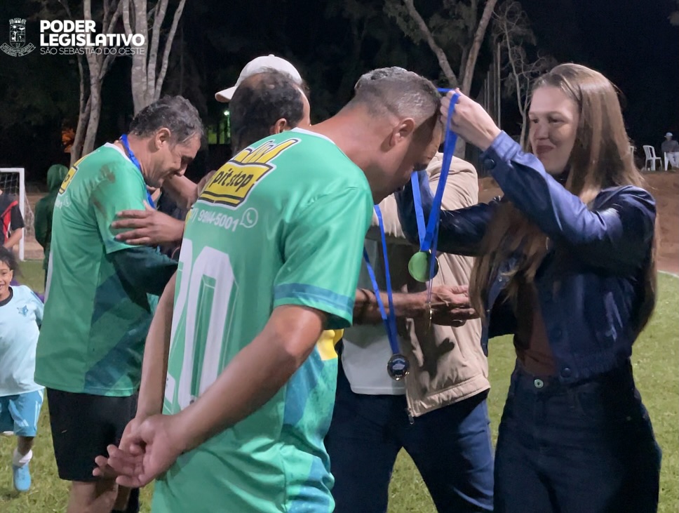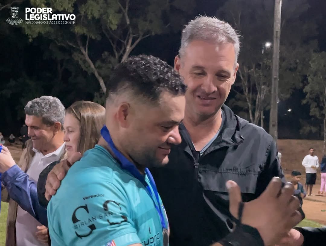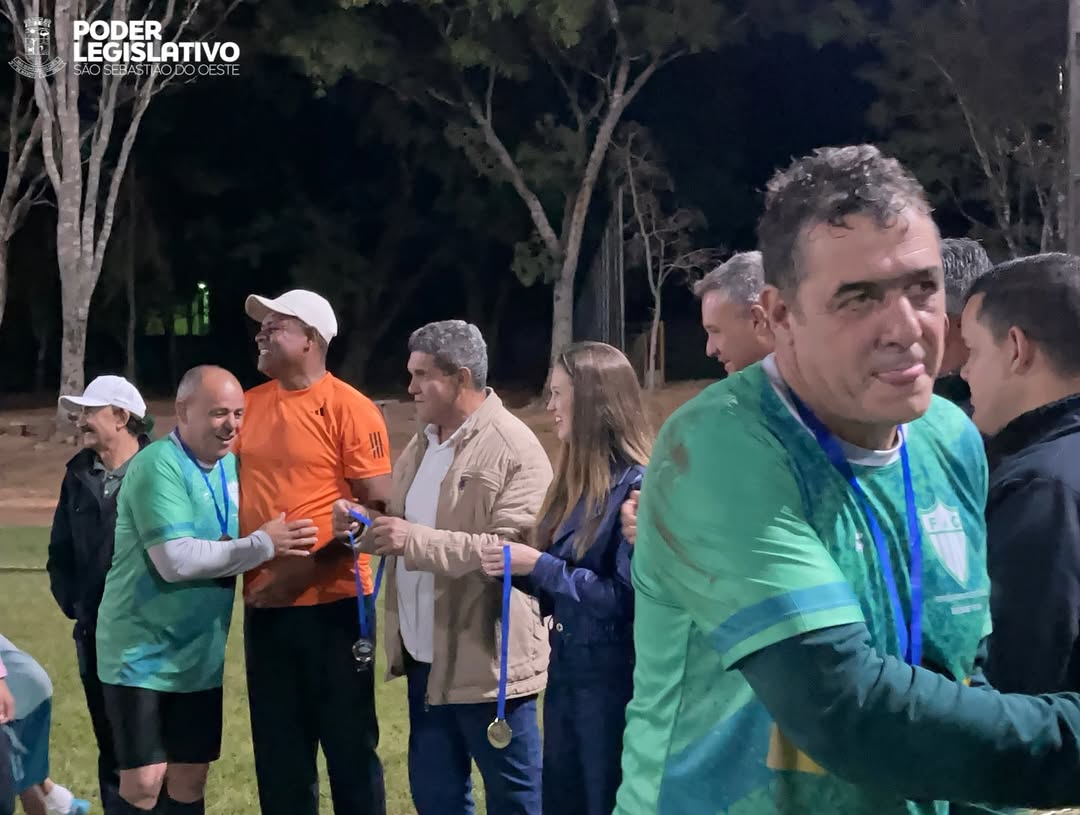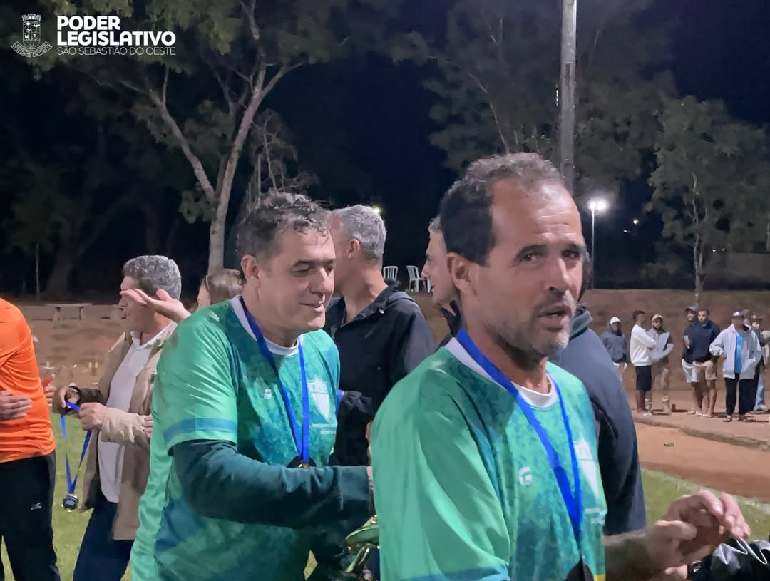Na grande final do Campeonato Society 40 Mais, os vereadores de São Sebastião do Oeste marcaram presença representando o presidente da Câmara, vereador Dorinato, reforçando o compromisso da Casa Legislativa com o incentivo ao esporte e à participação popular.