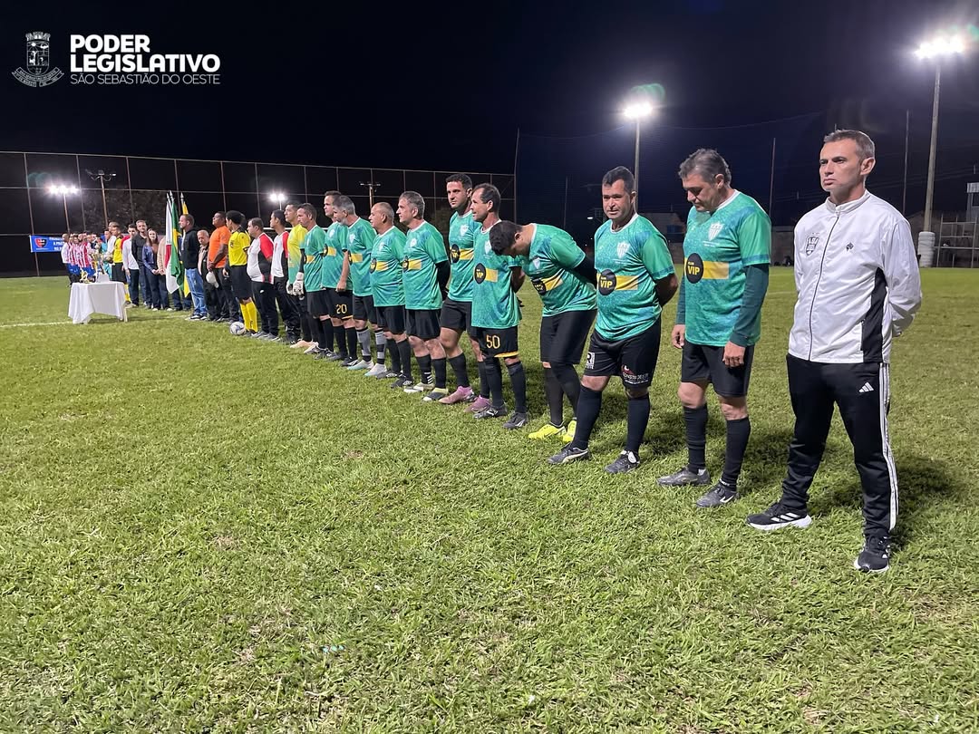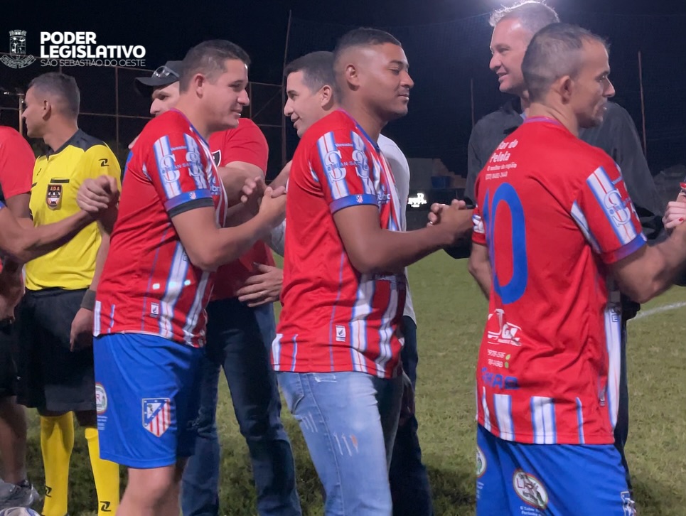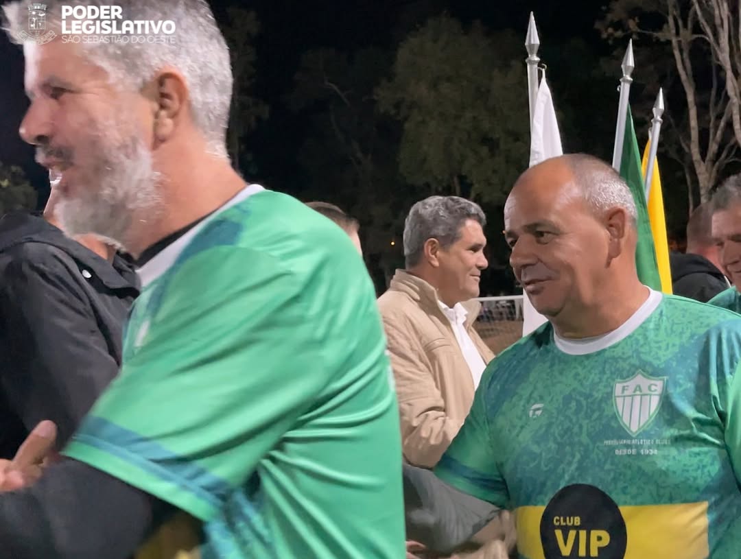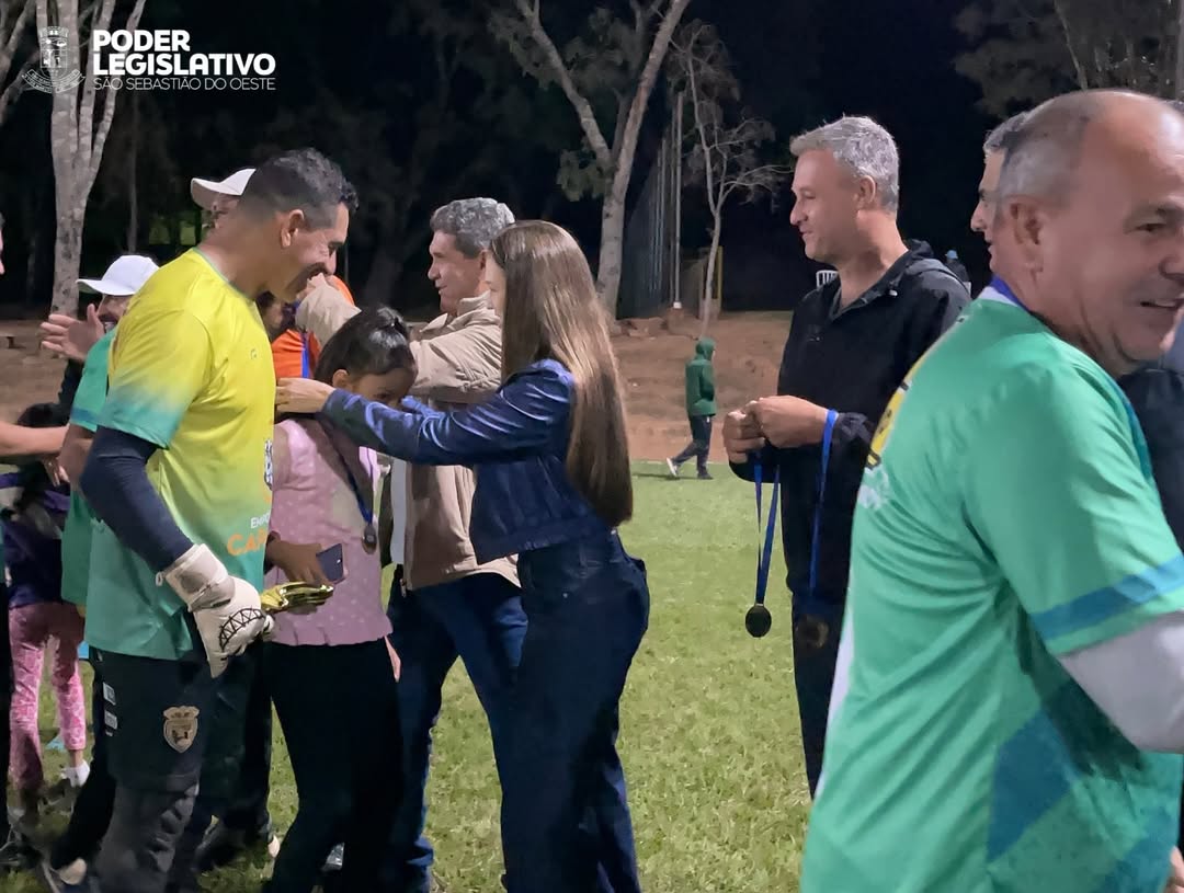 Na grande final do Campeonato Society 40 Mais, os vereadores de São Sebastião do Oeste marcaram presença representando o presidente da Câmara, vereador Dorinato, reforçando o compromisso da Casa Legislativa com o incentivo ao esporte e à participação popular.